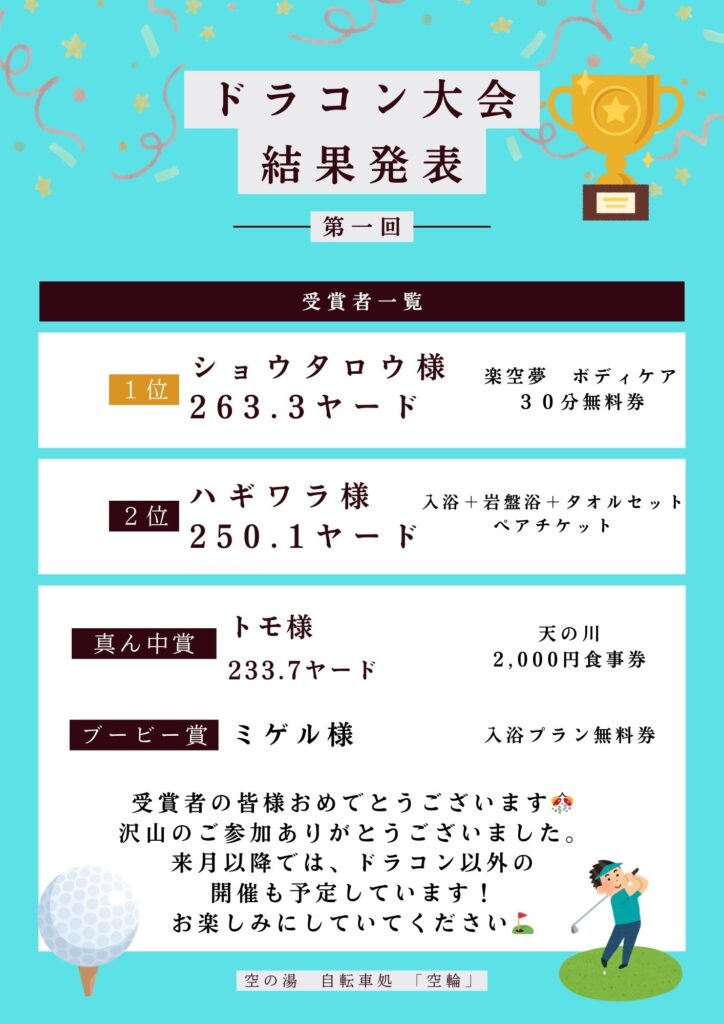 空の湯⛳ドラコン大会結果発表!!