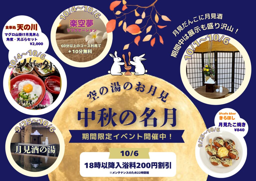 露天風呂には月見だんごや月見酒をお供えし、内湯の変わり湯には「月見酒の湯」た登場。