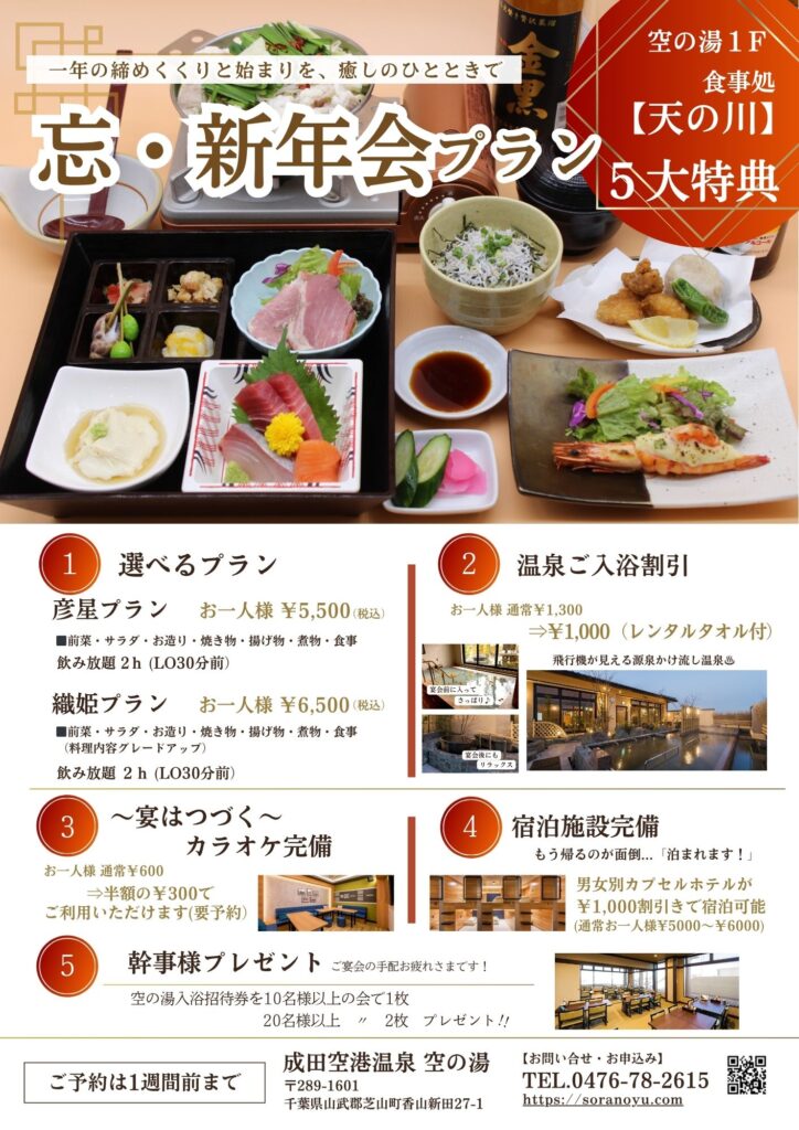 →ご予約は天の川、または空の湯フロントまで