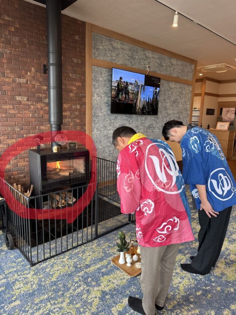 本日11月2日から、2階ヨギボーエリアの暖炉に火を入れました!