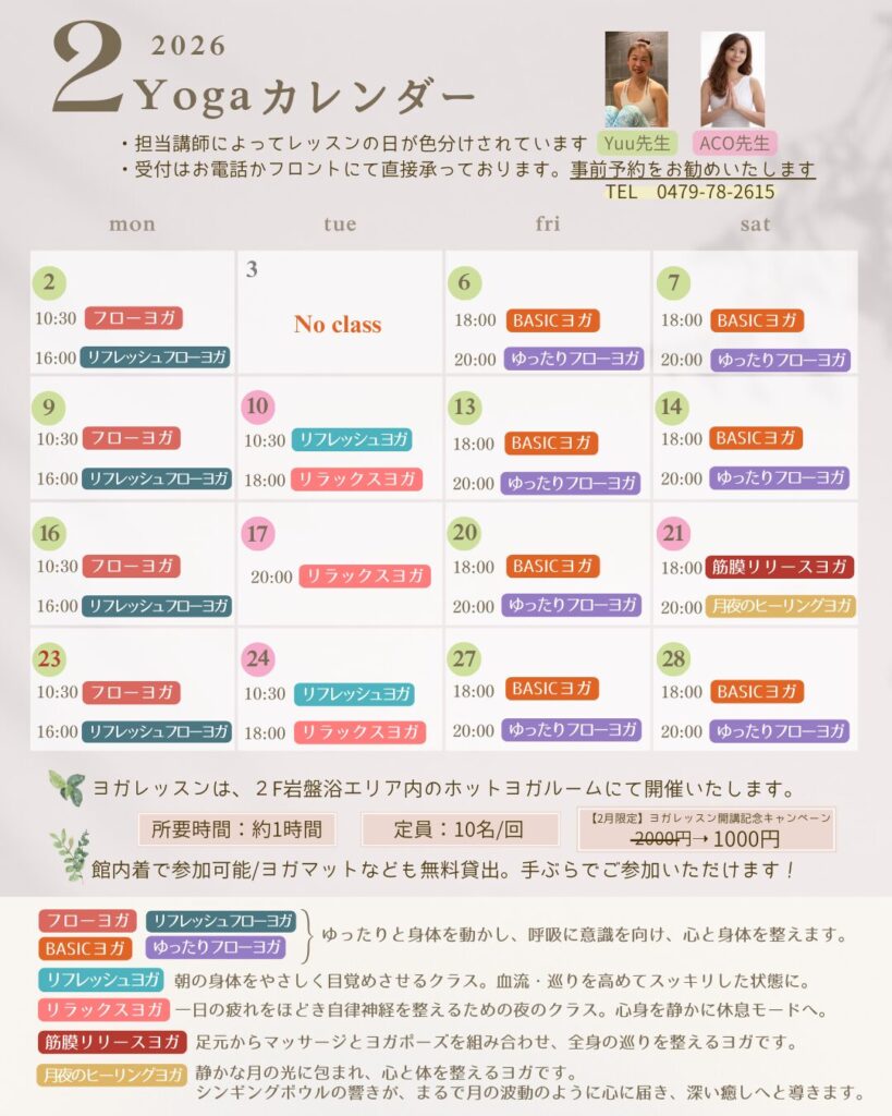 2月はヨガレッスン開講記念として、参加料2000円のところ半額1000円に!!