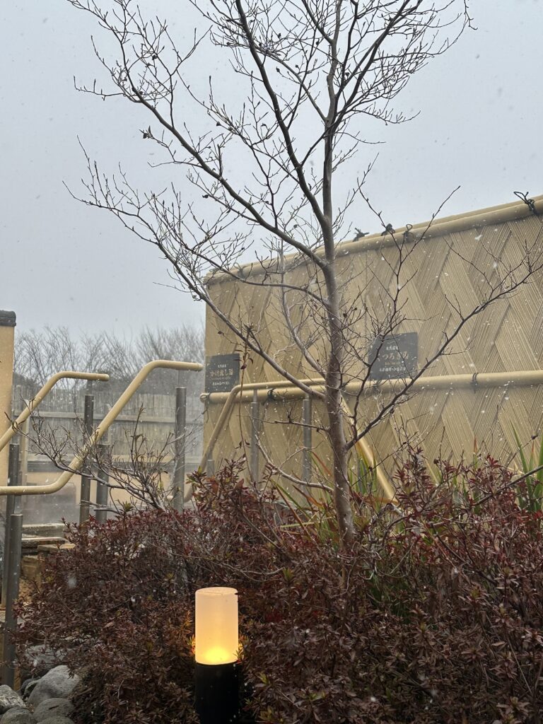 都心にいながら、雪が舞う中温泉に入れる。なんて素敵な体験でしょう!
