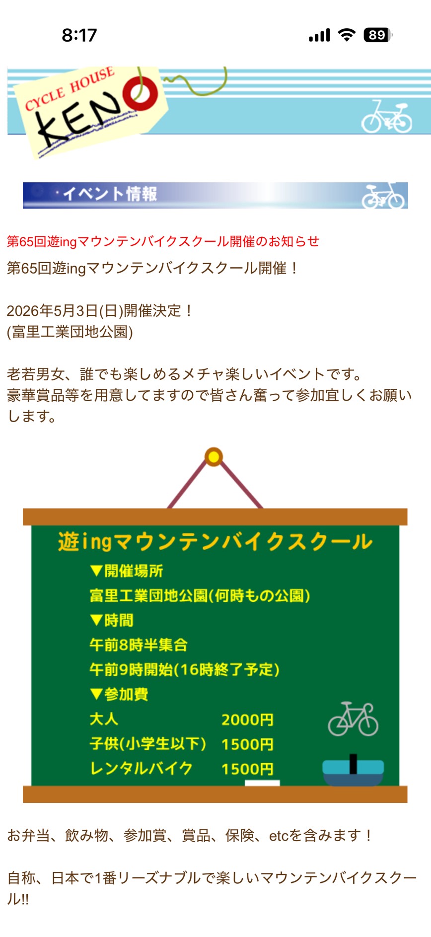 🚲マウンテンバイクスクールのご案内🚲